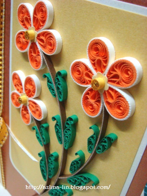 Remember the quilling blog hop I did early this month? Have a look at the link HERE. Look at the leaves. It's the same technique I used for the petals of this flower. The only difference is that I squeeze the middle part of the petal close together so that it looks like a petal. It can look like a leaf as well, if you use green colour quilling strips :).